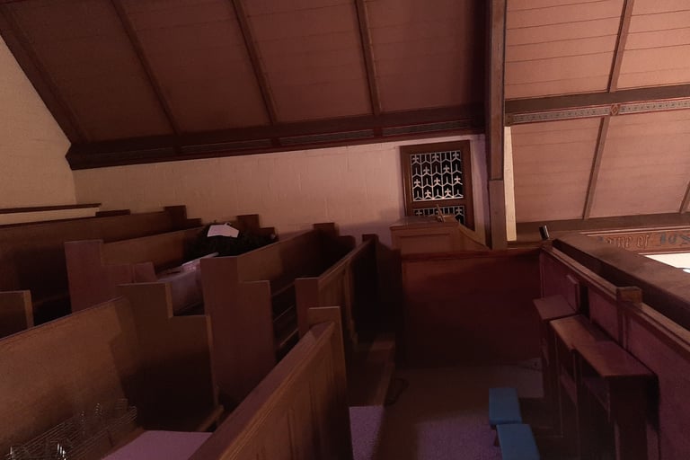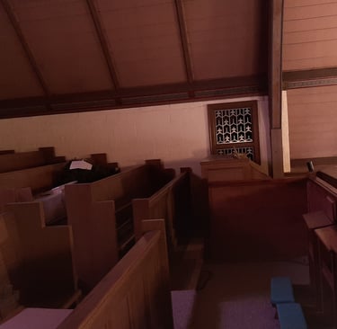 We plan to move the choir area to it's proper location: the choir loft. This is ideal to help create a prayerful atmosphere, and actually helps improve acoustics. The choir loft itself does not appear to be in need of repair, just a little dusting.
